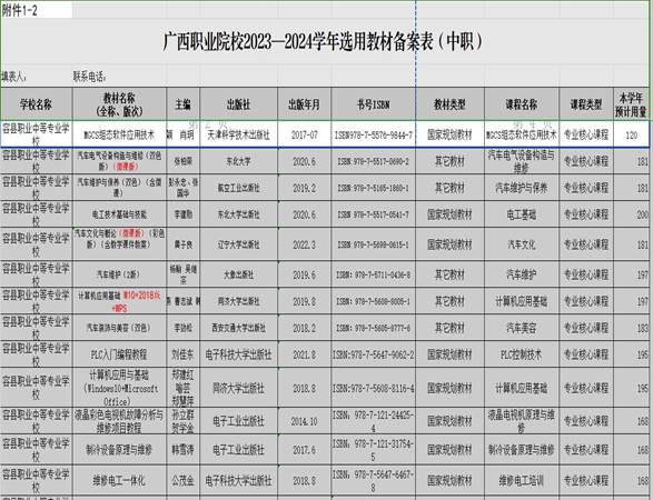 3:学校示范专业和优质专业情况表表 4:2023-2024 学年选用教材备案表