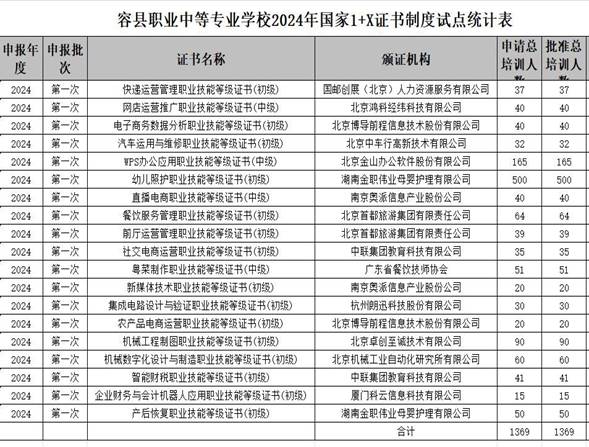表 5:2024 年“1+X”证书制度试点情况统计表