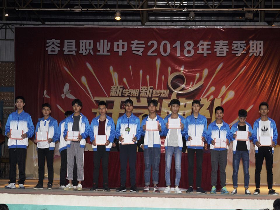 一、2018年3月6日晚在容县职业中等专业学校灯光球场举行2018年春季期开学典礼,全体师生员工参加,副校长吴明华主持会议,教师代表讲话、学生代表话、校长林萍讲话、副校长黄善林宣读学生技能竞赛和优秀实习生名单。