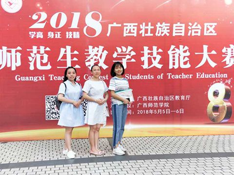 祝贺我校学前教育专业学生陈泉慧、姚飞燕在 2018年5月6日参加广西师范学院举办的全区师范生教学技能大赛分别获二等奖和三等奖!指导老师:林桦、梁洁梅、庞嘉韵