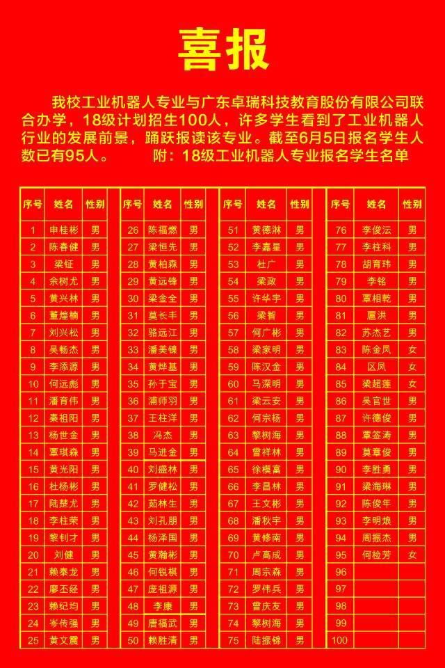 我校工业机器人技术专业与卓瑞科技教育股份有限公司合作办学。工业机器人作为先进制造业中不可替代的重要装备和手段,已成为衡量一个国家制造业水平和科技水平的重要标志。随着劳动力资源成本的不断增加,企业的生产成本日益提高,直接影响到了制造业的生存和发展。大量使用机器人代替手工制作能大幅度地提高生产利润,智能制造已经成为制造业发展的必然趋势。