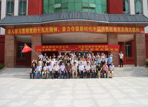 庆祝建党97周年,缅怀革命先烈,传承革命传统,弘扬爱国主义精神,全面深化“两学一做”学习教育,进一步强化党员干部的理想信念和宗旨意识,切实增强党员的党性修养, 2018年6月19日我校党支部会同县教育局党支部组织全体党员90多人到容县党的建设教育基地和县底革命传统教育基地集中开展迎“七·一”党性教育主题活动。