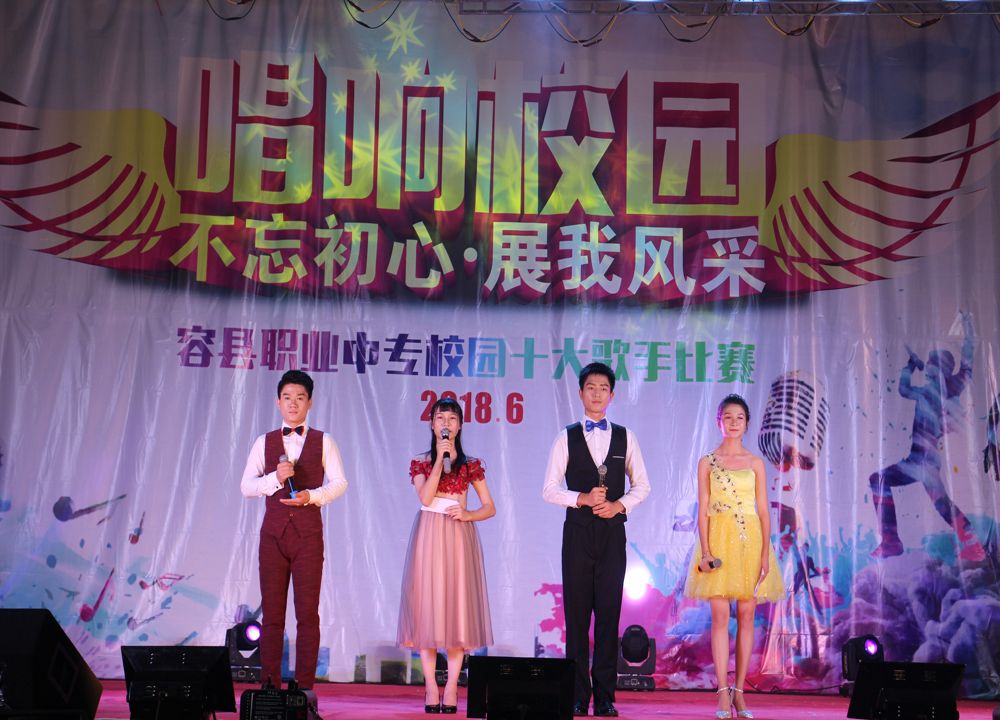 2018年6月20日晚,在容县职业中等专业学校灯光球场举行“不忘初心,展我风采”校园十大歌手大赛。