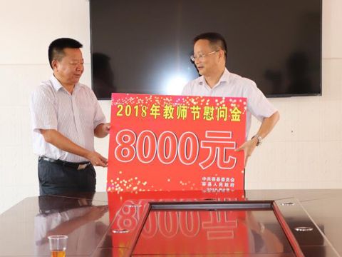 在第34个教师节即将到来之际,2018年9月7日上午,容县人民代表大会常务委员会主任孔德军,县人大常委会党组成员、办公室主任邓文森,容县教育局党组副书记丶副局长林桂来,到容县职业中等专业学校给教师致以节日祝福和诚挚问候。