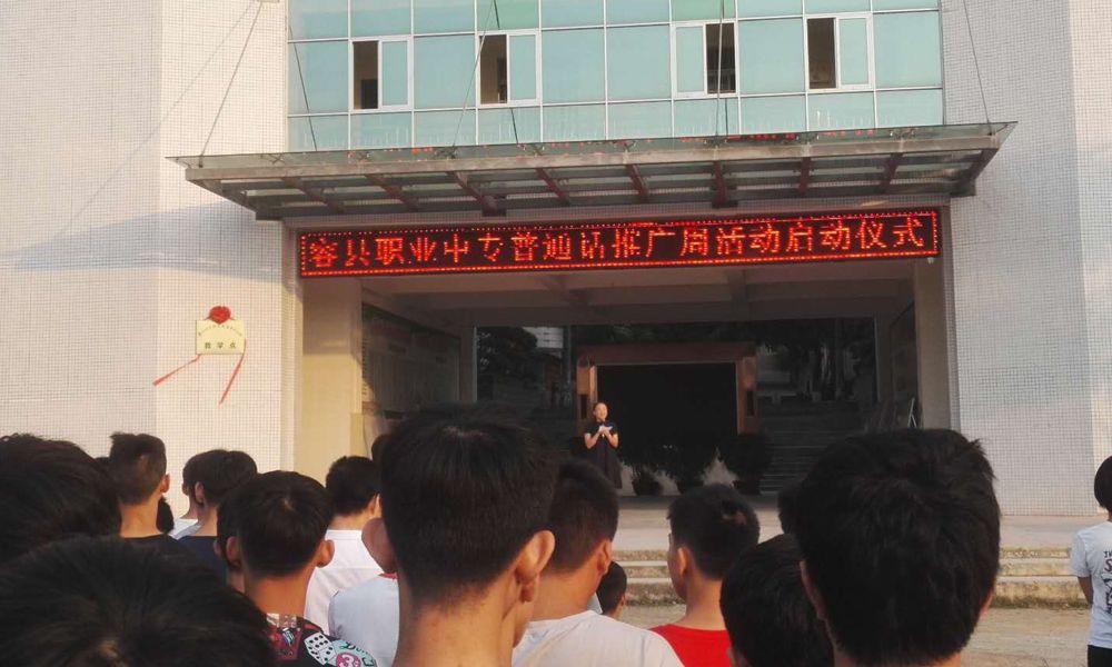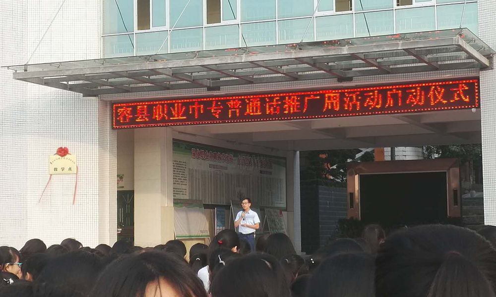 一、容县职业中等专业学校举行第21界推普周的启动仪式,林桦主持,卢仕斌副校长做了重要讲话,学生代表李菊做了发言。