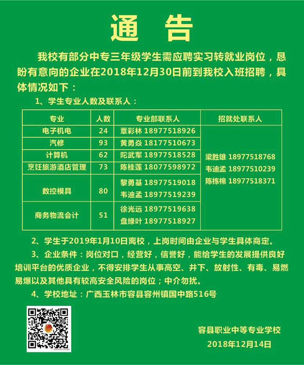 信息来源:容县职业中专招就处 发布时间: 共有3315人查看