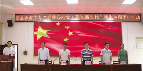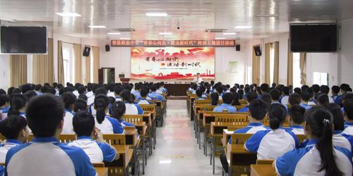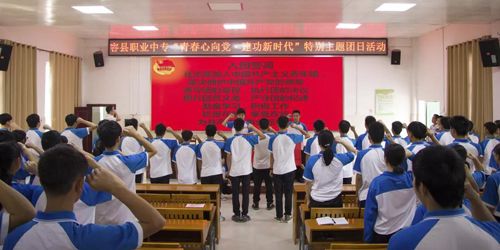 3.主题微团课 向上青年 五四运动孕育了以爱国、进步、民主、科学为主要内容的伟大五四精神,其核心是爱国主义。对新时代中国青年来说,热爱祖国是立身之本、成才之基。爱国主义同为国奉献紧紧地联系在一起,是一种崇高的思想品德。 三、容县职业中专学术报告厅 2019年5月16日下午,我校团委开展“青春心向党,建功新时代”特别主题团日活动。学校高度重视本次活动,党支部书记林萍、党支部副书记区大钊、吴明华副校长,卢仕斌副校长,团委书记陈桂莲老师出席本次活动。