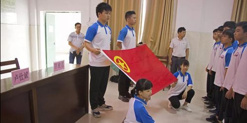 3.团旗下的演讲 入团仪式 4.入团光荣时刻 寄语团员 5.学校党支部副书记区大钊寄语团员: 一是弘扬爱国主义精神。把勤奋学习作为人生进步的重要阶梯,把深入实践作为成长成才的必由之路,把奉献社会作为不懈追求的优良品德。树立热爱祖国、奉献社会、服务人民的信念,时刻准备着为祖国的安定稳定,繁荣昌盛贡献聪明才。 二是始终勤奋学习。珍惜时间,明确学习目的,端正学习态度,时时处处学,持之以恒学,打牢知识根基。在实践锻炼中积累智慧、施展才华,在搏击风浪中增长才干、成为栋梁。 三是着力锤炼高尚品格。注重身体力行,从自身做起、从小事做起,积极践行社会主义核心价值观,学会感恩、学会助人、学会自律,争当向上向善好青年,为提高全社会文明程度作出积极贡献。齐唱团歌,作为青年学生,我们应当在坚定理想信念的基础上,勤奋学习,勇于创新,艰苦创业,展现21世纪中国青年的时代风采,实现中华民族在二十一世纪伟大复兴的愿望。 让我们在中国共产党的的正确领导下,携手奋斗,为新时代贡献自己的力量!