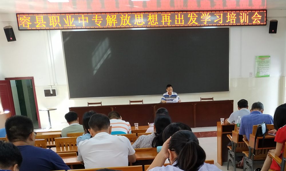2019年6月21日,容县职业中专党支部在学术报告厅集中全体党员召开解放思想再出发学习培训会,会议由学校党支部副书记区大钊主持,党支部书记林萍主讲。 会上,林萍书记强调了解放思想再出发的重要性,并就为什么要解放思想和怎样解放思想做了具体的论述,最后,提出了本次活动的要求:第一,在改革创新中解放思想;第二,要切实加强理论学习,在学习中主动转变观念;第三,要切实改进工作作风,真正解决自身存在的问题。