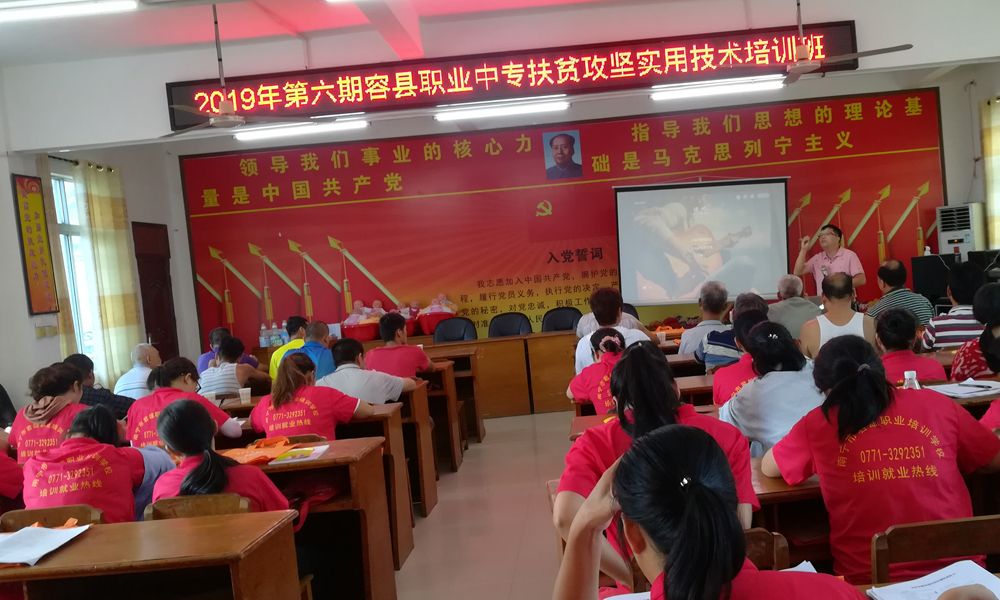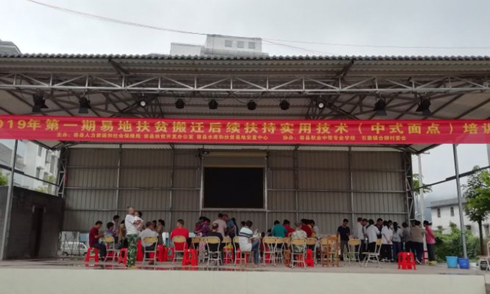 容县职业中等专业学校充分发挥职业教育职能作用,在脱贫攻坚工作中主动发挥主动作为,主动联合相关部门到各镇村开展农民工技能培训。 5月29日,与县人社局、移民局、扶贫办,联合在容县石寨移民易地安置点举办中式面点培训班,参加培训50人,人社局覃伟图副局长、梁世森主任、扶贫办李芝容副主任、移民局梁世贤副局长、县职业中专吴明华副校长参加开班仪式。卓礼晓、赖亭君老师上课。