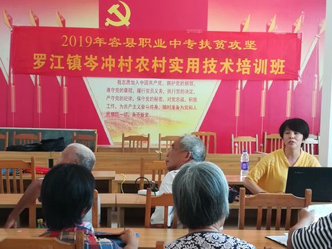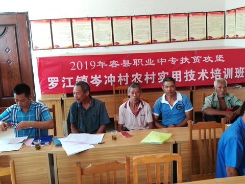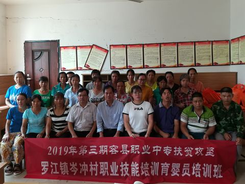 7月29日,县职业中专聘请专家到罗江镇岑冲村举办农村实用技术培训班(百香果田间管理技术),参加培训的农民30人。 8月15日至28日,与玉林市敬民科技学校在罗江岑冲村联合举办职业技能培训育婴员培训班。陀武军、谢雨梦老师上课。参加培训农民48人。