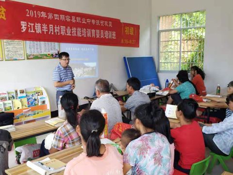 8月15日至28日,与玉林市敬民科技学校在罗江半月村联合举办职业技能培训育婴员培训班。陀武军、余旭婵老师上课。参加培训农民44人。
